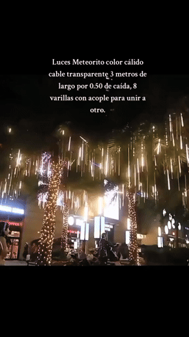 Diseñadas con tecnología LED de alta eficiencia, nuestras luces meteorito ofrecen un flujo continuo y uniforme que simula el recorrido real de un meteoro cayendo del cielo. Sus colores intensos, cambiantes y fluidos crean un efecto hipnótico que encanta tanto de día como de noche. Además, su diseño resistente a la intemperie garantiza un rendimiento impecable incluso bajo lluvia o viento. Son ideales para decorar celebraciones, ambientes navideños o eventos especiales con estilo y distinción.